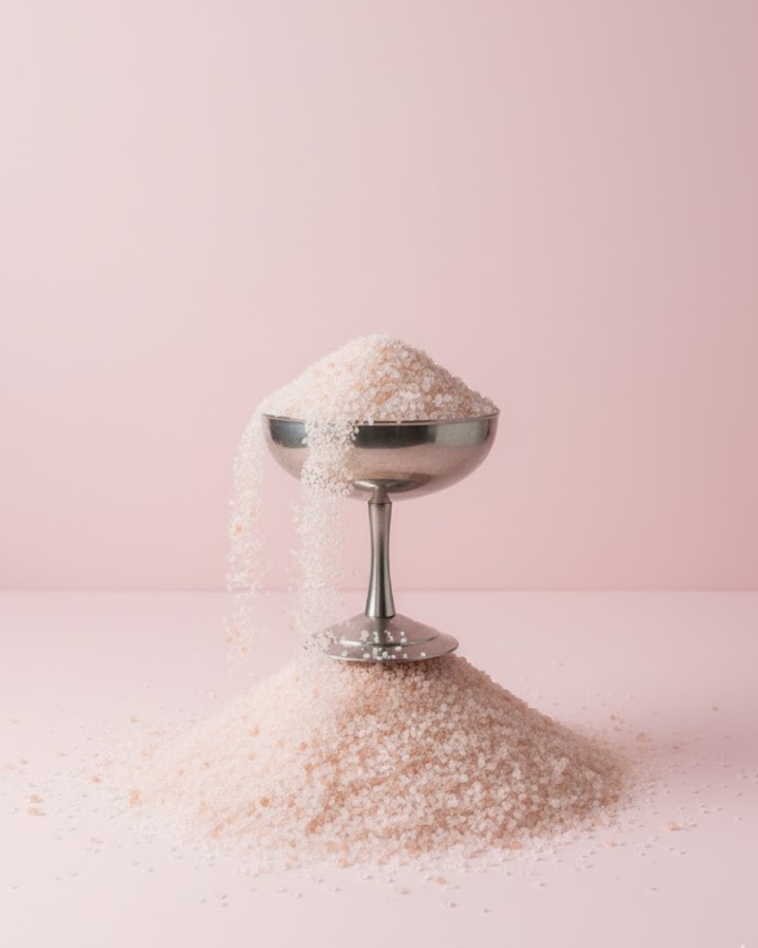 Den rosa tonen beror på spårmineraler – framför allt järn. Färgen påverkar inte sältan, men ger ett hantverksmässigt uttryck på bordet.