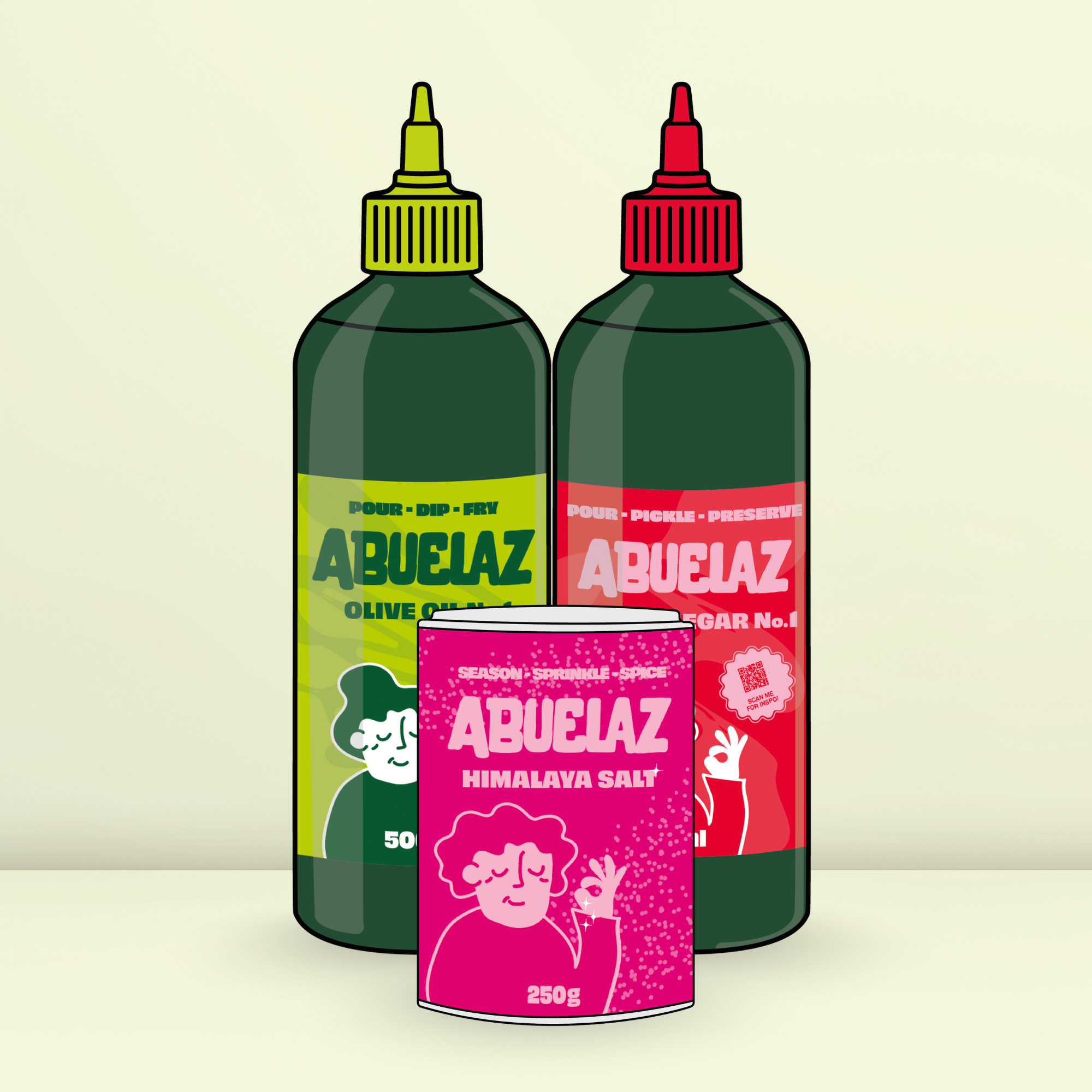 Abuelaz olivolja, vinäger och salt i ett snyggt paket.